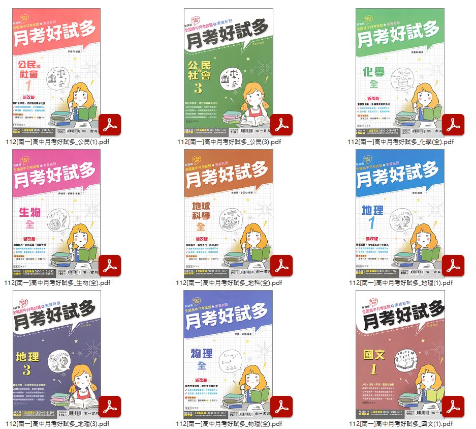 112學年上學期[南一]高中月考好試多 評量卷 1-2年級 卷類光碟