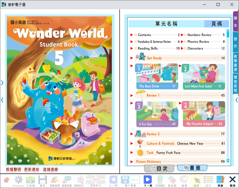 112學年上學期 國小 康軒版 英語電子書 Wonder World 第5冊(含課本、習作含解答) 教學光碟