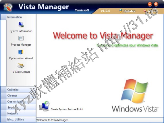 • Yamicsoft Vista Manager v1.4.4 英文正式版(優化及設置 Windows Vista的系統工具軟體)